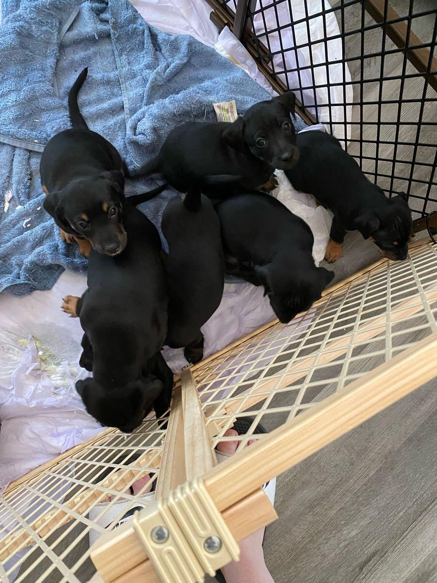 View Details4 pups left to go. They are a mix of Dachshund and minipit. 1st round of shots done.