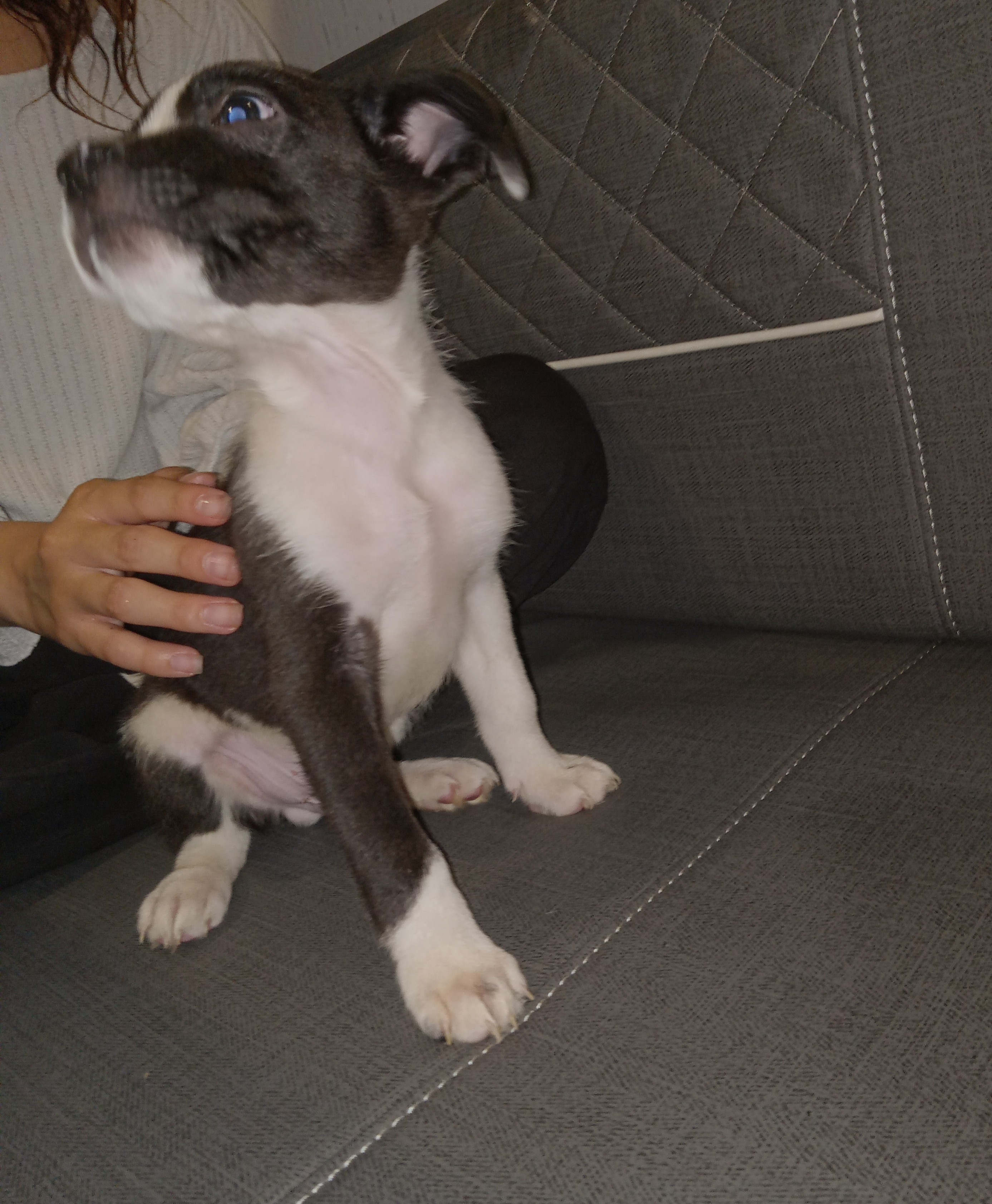 View DetailsExtremely lovable black/white pit bull puppy, with stripes, already trained to use a "bathroom pad", very smart boy. He's looking for a loving forever home!!