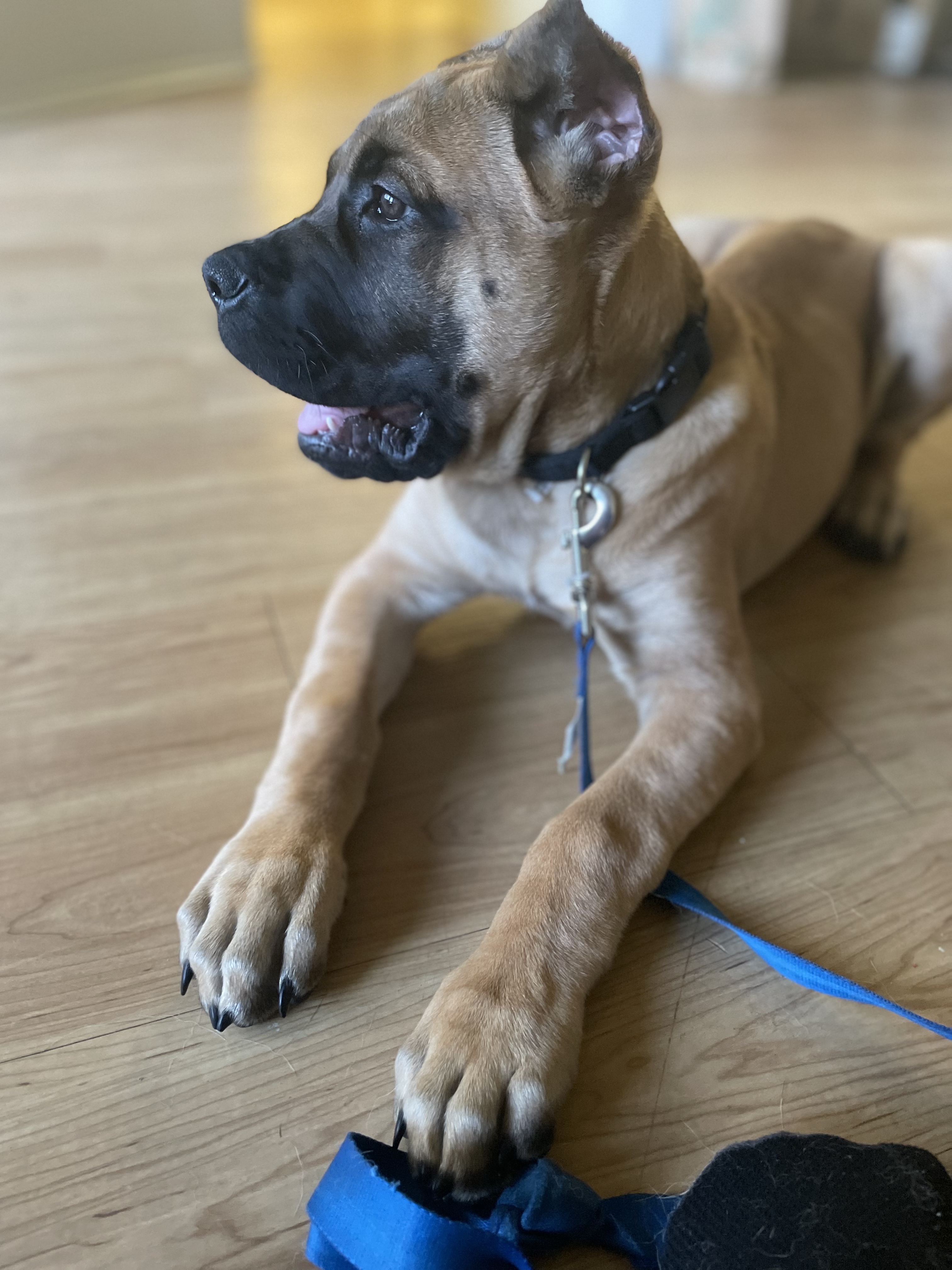 View Details12 Week Female Mastiff 57 PoundsHouse trained Crate trainedLeash TrainedFull AKC paperwork and certifications includedBear paws on this one big girl with a male body